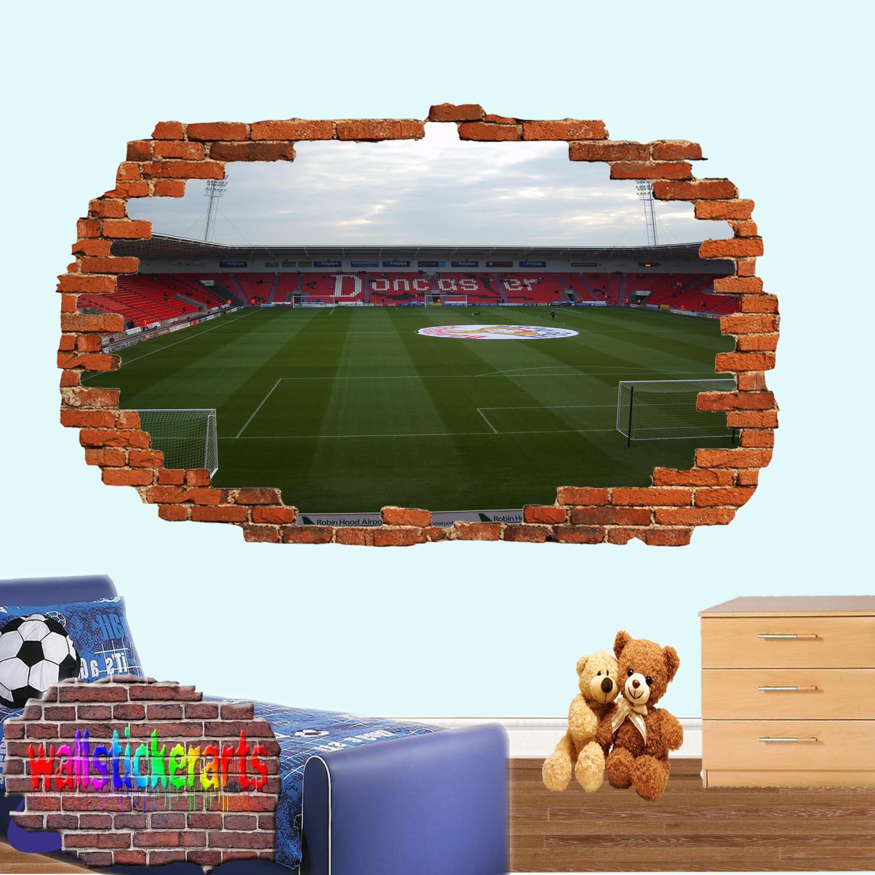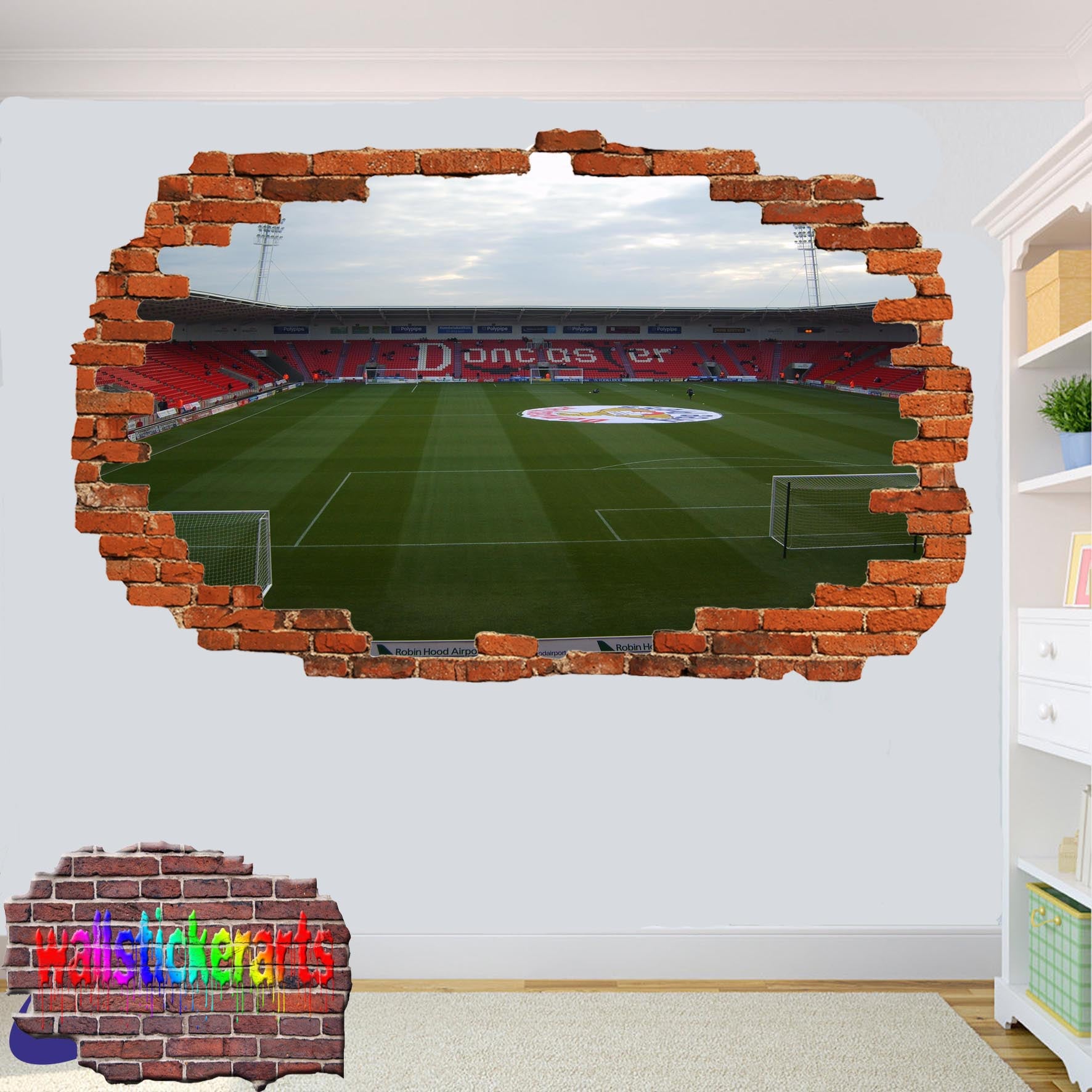 Doncaster Rovers Keepmoat Football Stadium 3d Smashed Wall Sticker Mural Room Office Shop Decoration Decal YY9