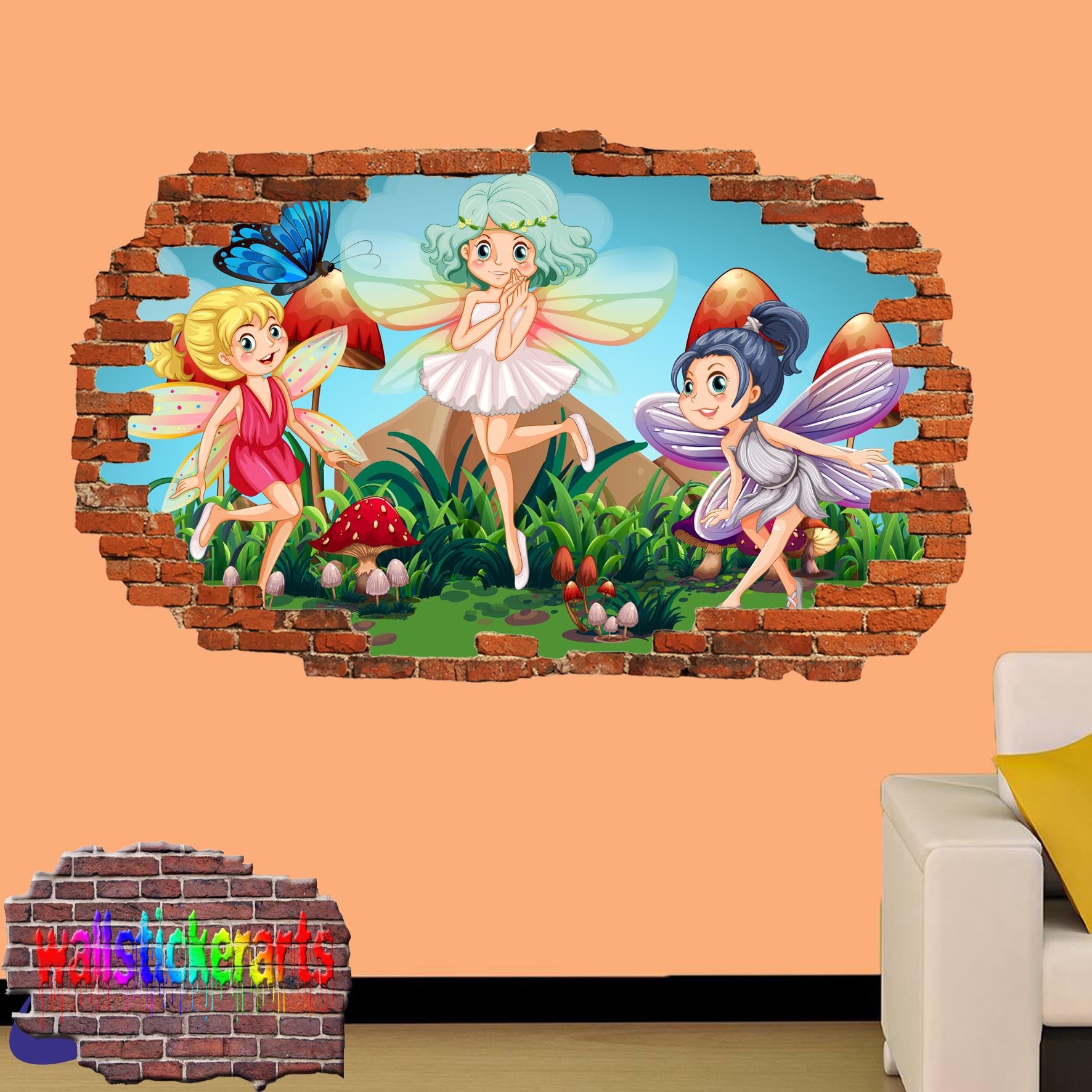 Little Cartoon Fairies 3d Art Wall Sticker Girls Room Nursery Decor Decal Mural XR4