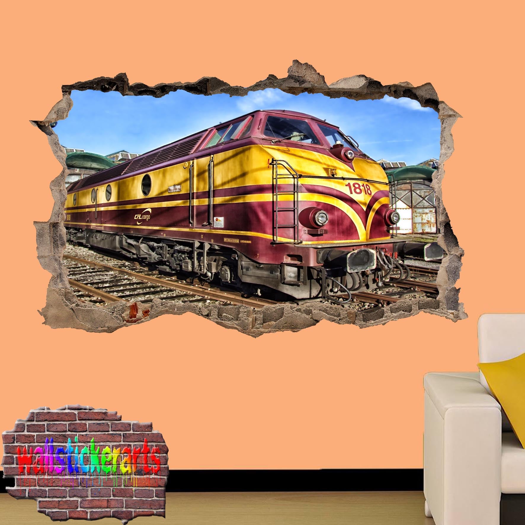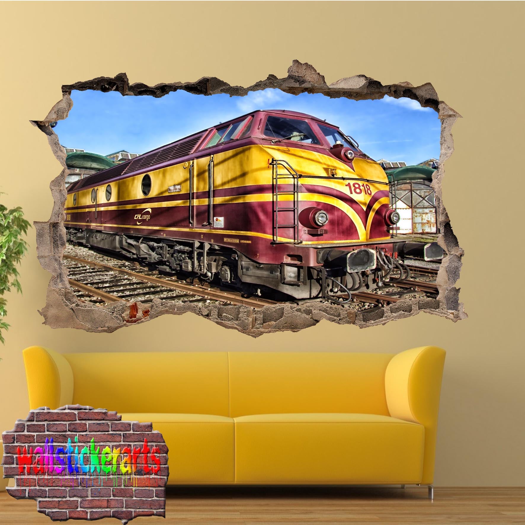 Locomotive Train Engine 3d Art Smashed Effect Wall Sticker Room Nursery Shop Decal Mural VV3