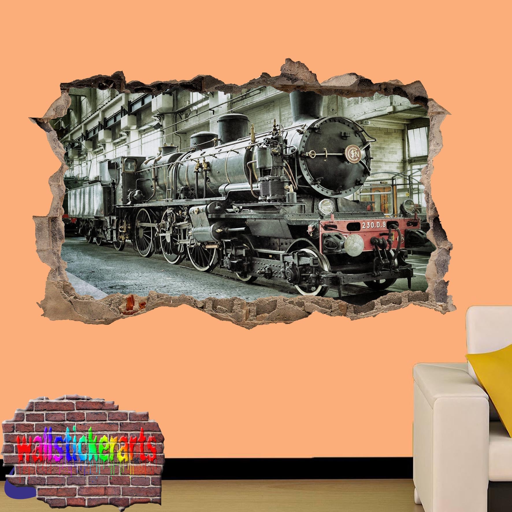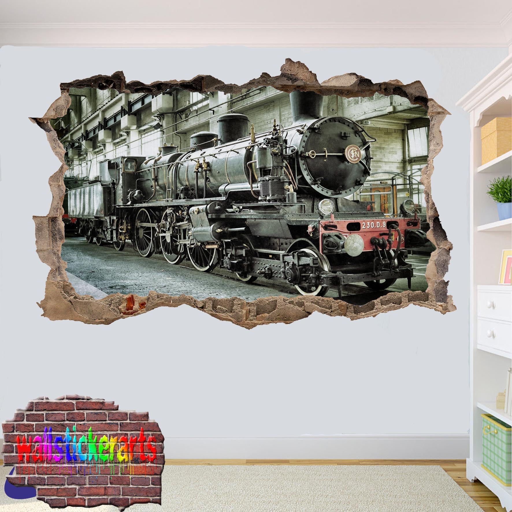 Old Steam Train Locomotive 3d Art Effect Wall Sticker Room Office Nursery Shop Decoration Decal Mural YW0