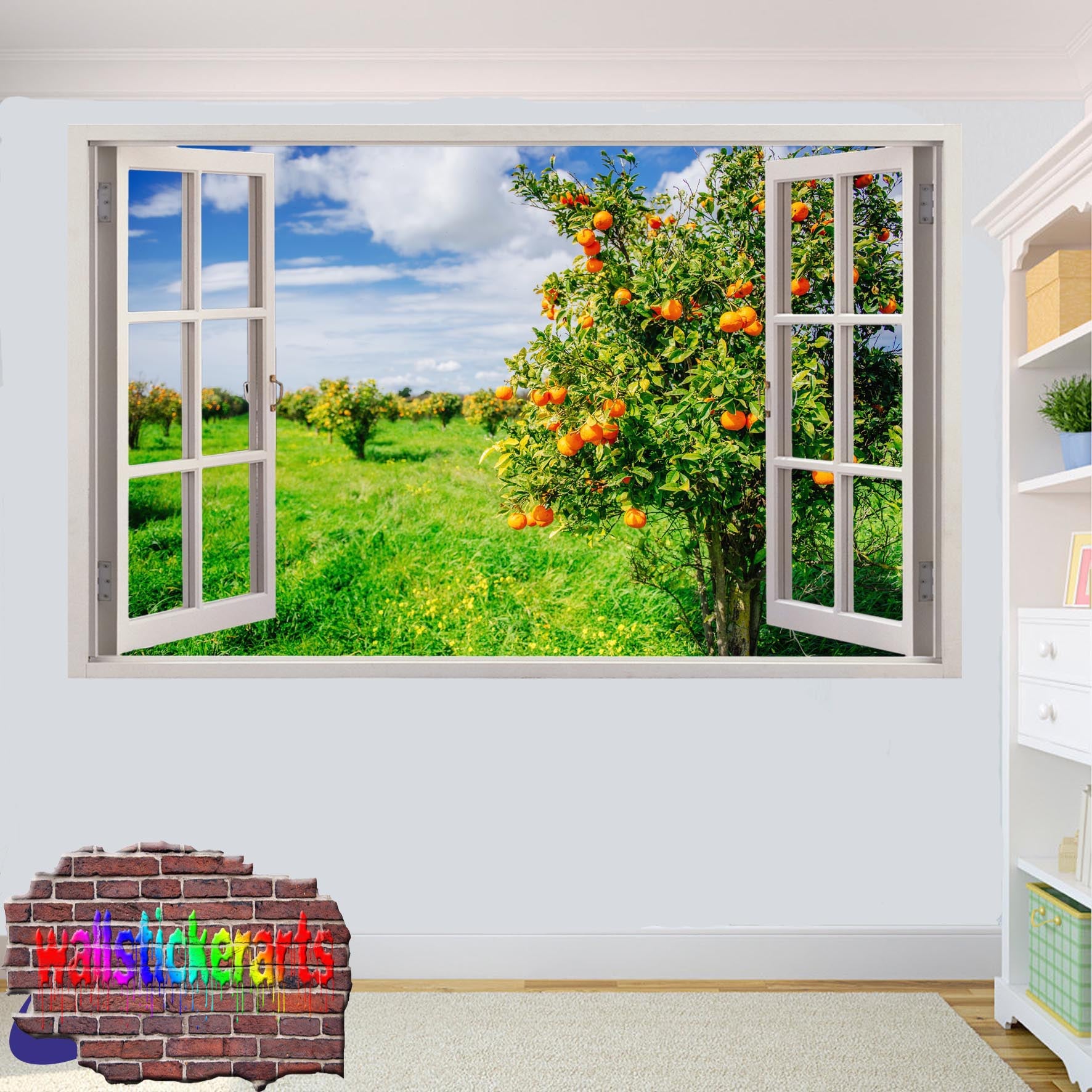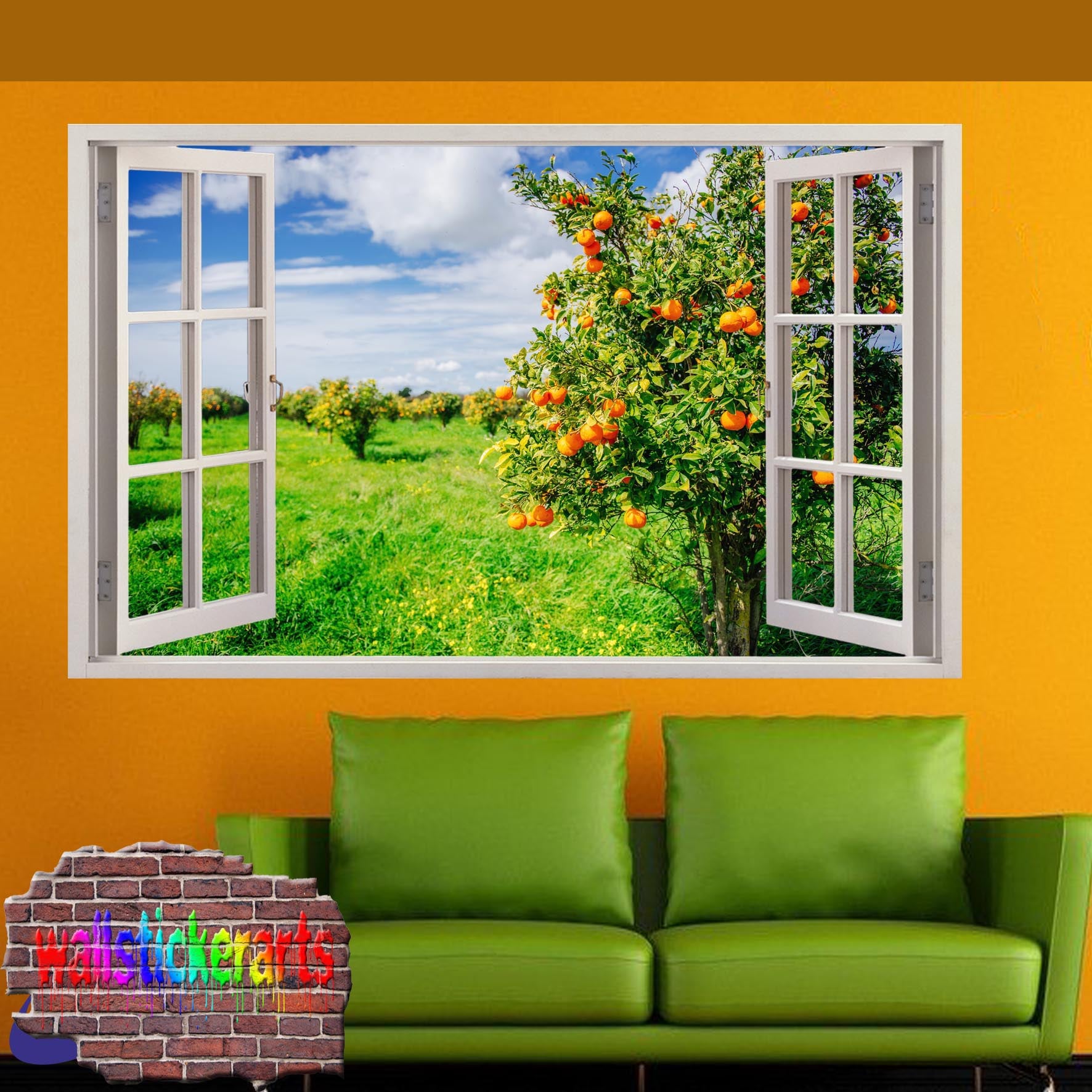 Orange Farm Trees 3d Art Wall Sticker Mural Room Office Shop Home Decor Decal YS5