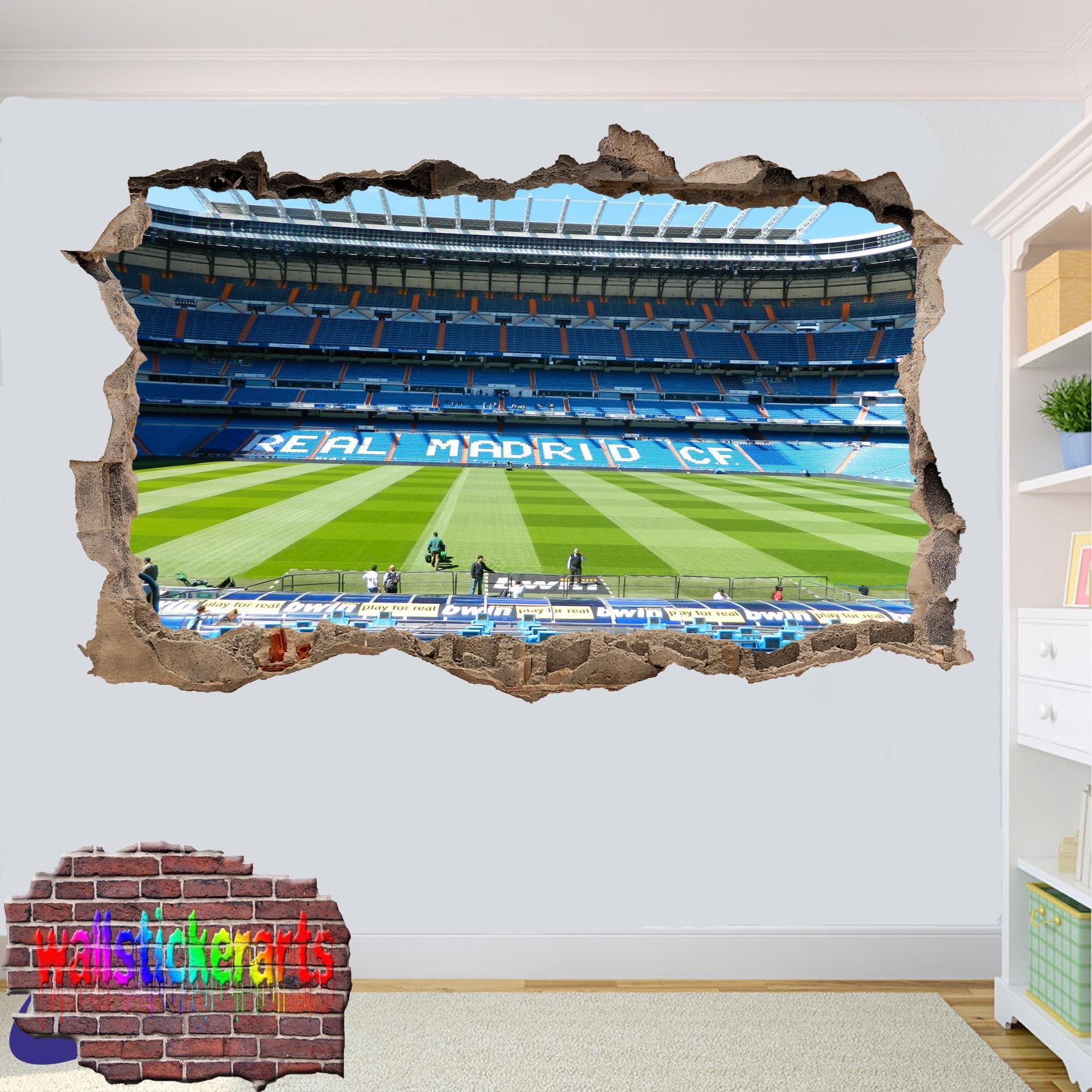 Real Madrid Football Stadium Bernabeu 3d Smashed Wall Sticker Room Decor Decal Mural XE1