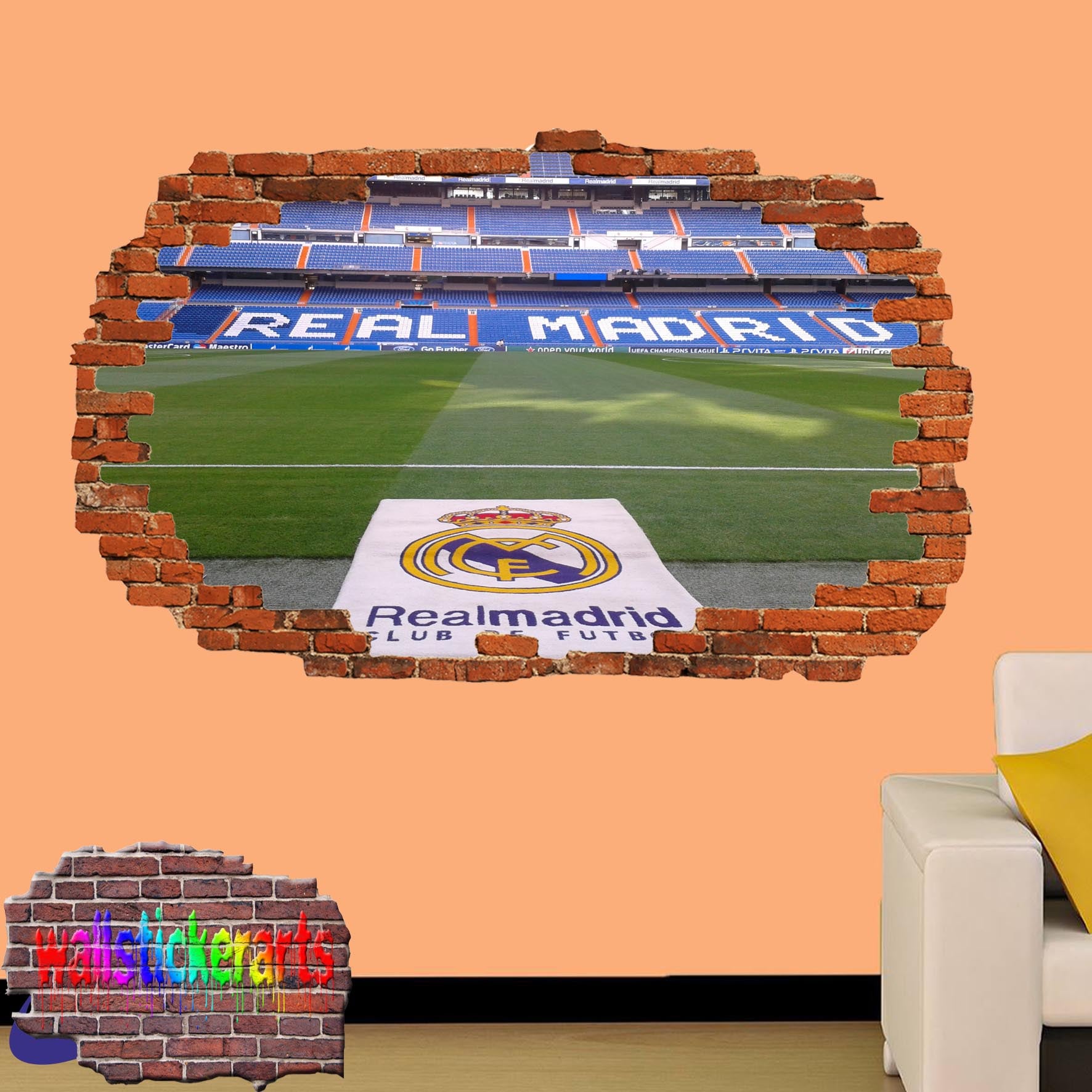 Real Madrid Football Stadium Bernabeu 3d Smashed Wall Sticker Room Decor Decal Mural XE7