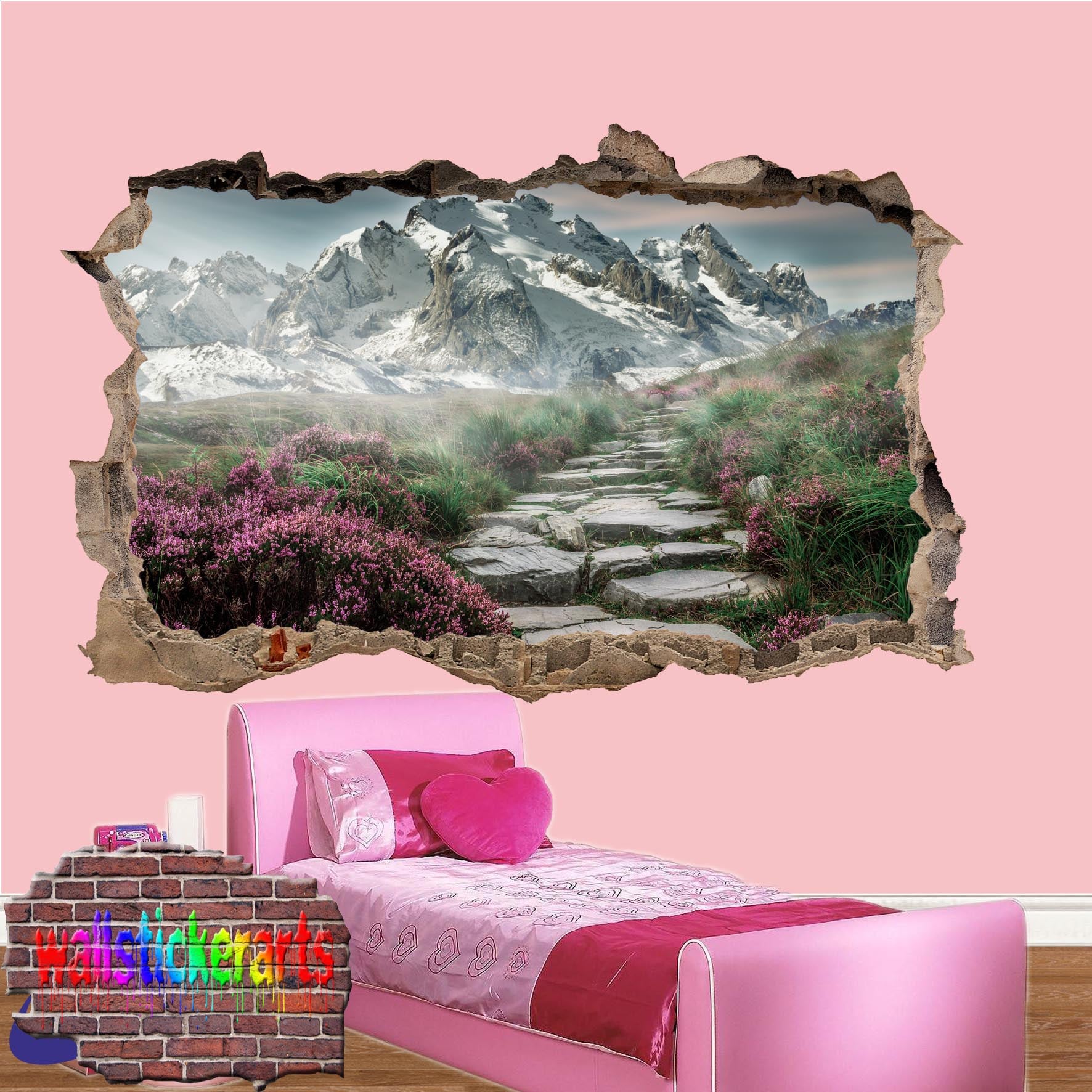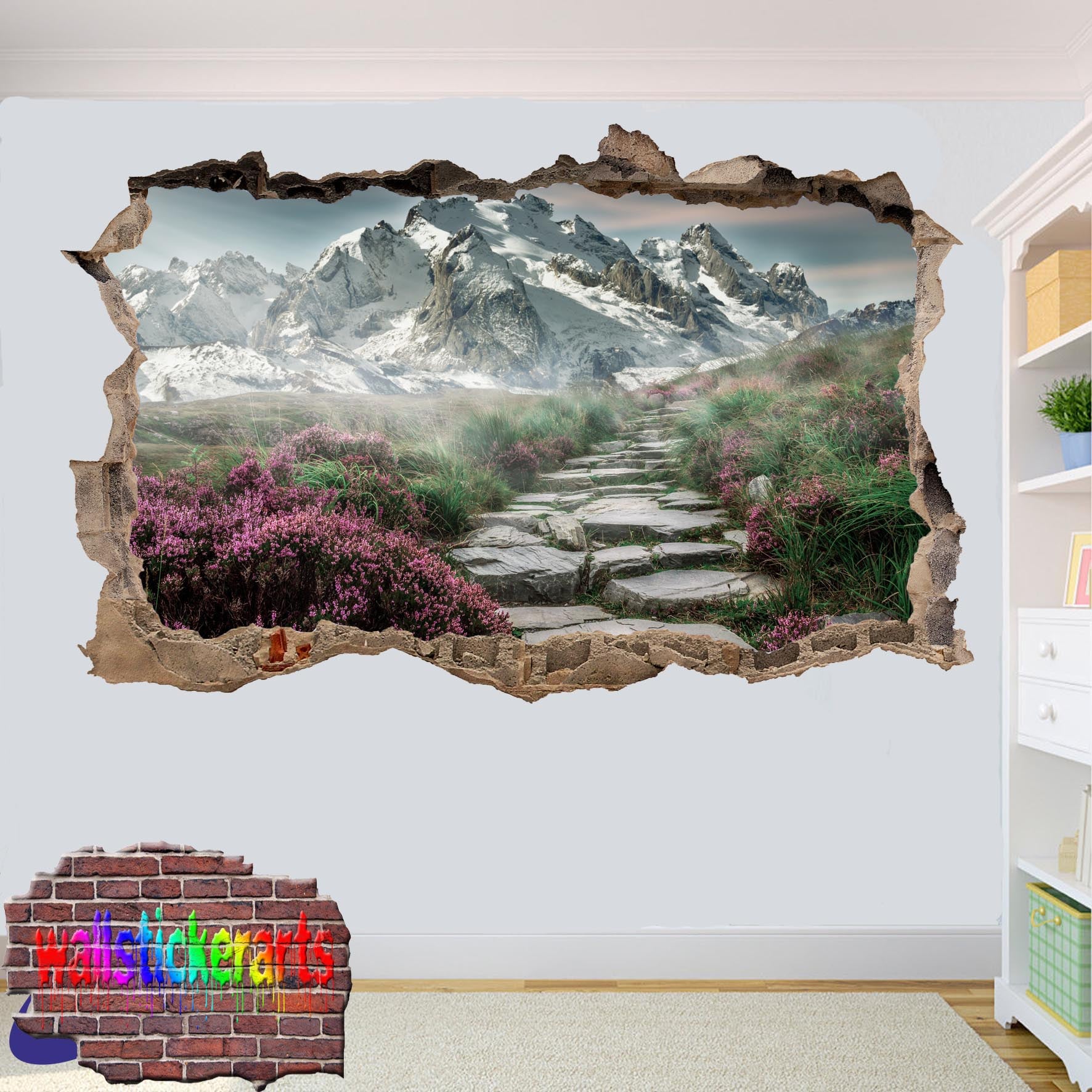 Snowy Mountains Path Flowers 3d Art Wall Sticker Mural Room Office Shop Home Decor Decal YV7