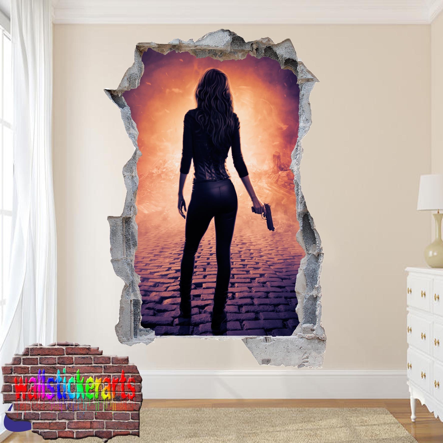 Woman Hitman Assassin 3d Art Wall Sticker Room Office Nursery Decor Decal Mural VG9